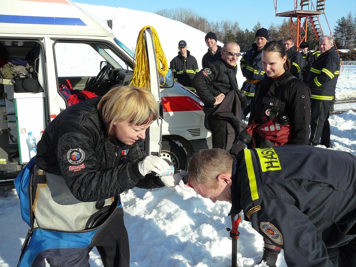 Členové sdružení byli přizváni HZS Mladá Boleslav ke společnému výcviku záchrany na ledu. V ranních hodinách jsme se společně sešli na učebně HZS, kde proběhla velmi dobře zpracovaná teoretická prezentace. Po obědě se všichni účastníci přesunuli na koupaliště v Bakově nad Jizerou, kde pokračoval praktický výcvik. Záchranáři si postupně vyzkoušeli různé techniky záchrany při proboření ledu, vč. improvizovaných pomůcek. Někteří odvážlivci si vyzkoušeli i pobyt ve vodě bez suchého neoprenu, pouze v zásahových oděvech. Výcvik byl ukončen v 16 hodin.